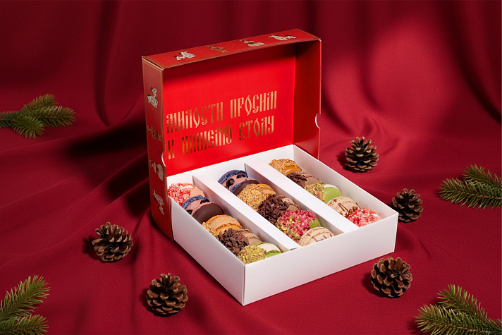 WOW макарон лимитированной новогодней коллекции. Взбитый в пену шоколадный ганаш с добавлением кофейного крема и фирменной соленой карамели. Пирожное декорировано густой шоколадной глазурью, кофейными зернами и орехами пекан. Объемное пирожное макарон дарит ощущение целого торта в одном пирожном, насыщенный индивидуальный орехово-шоколадный пир и праздник!