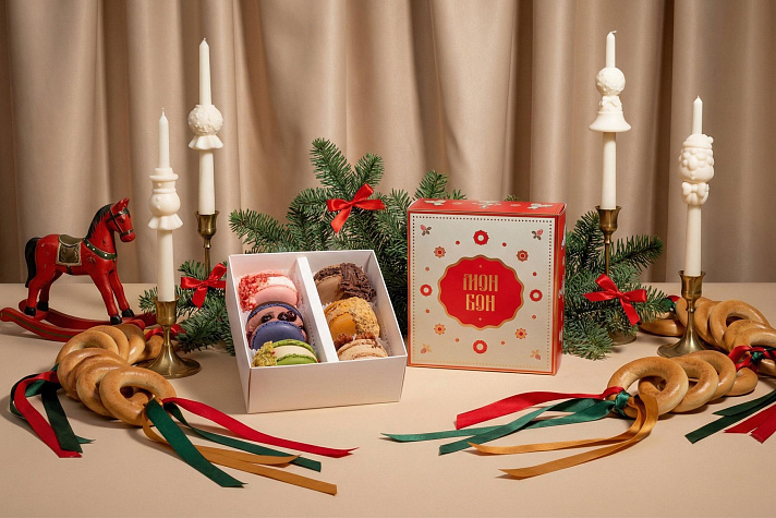 • Яркая коробочка, ленты премиум-класса, которые приятно развязывать, и симпатичные открытки превращают монбоны в универсальный подарок