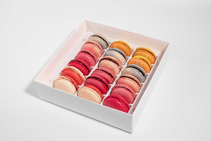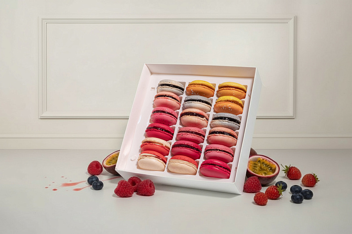 Если вы хотите напечатать свои изображения, фото или надписи на пирожных, этот вкус хорошо подходит для печати надписей и картинок, фотографии рекомендуем печатать на макаронах с белыми половинками.