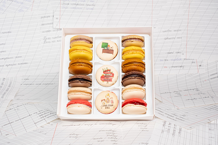 Набор из 15 пирожных макарон ассорти — это замечательный вариант для тех, кто хочет удивить любимого учителя, но не знает, как сделать это стандартными цветами.