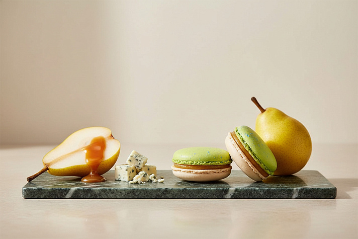 Наш самый необычный монбон со вкусом голубого сыра с виноградом не один, и компанию ему составит нежная карамелизированная груша с горгонзолой. Внутри легкого, грушевого конфитюра мы припрятали горгонзолу, которая, как фейерверк, наполняет вас морем эмоций