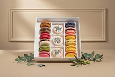 • Дизайнерская коробочка, оформленная в стиле импрессионизма, атласные ленты премиум-класса, которые приятно развязывать, и симпатичные открытки превращают макароны в универсальный подарок
