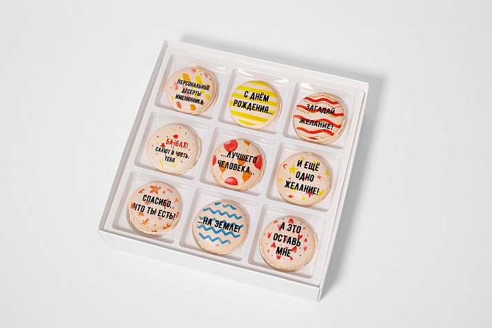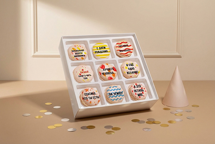 Какой именинник без персональных сладостей? Ассорти пирожных макарон с праздничными иллюстрациями развлечет, поздравит и осчастливит одновременно!