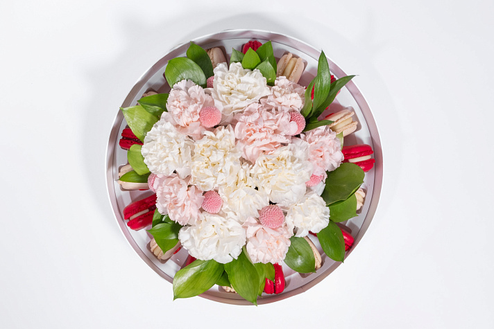 Букет из нежных диантусов добавляет мягкости и трепета.