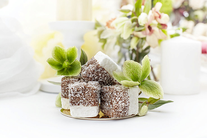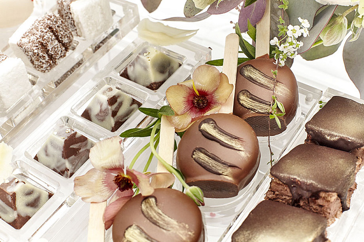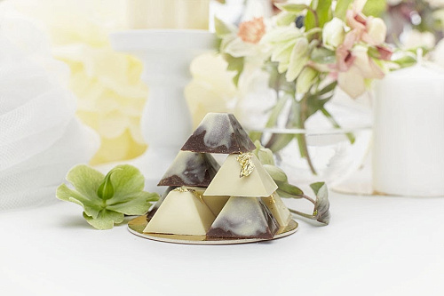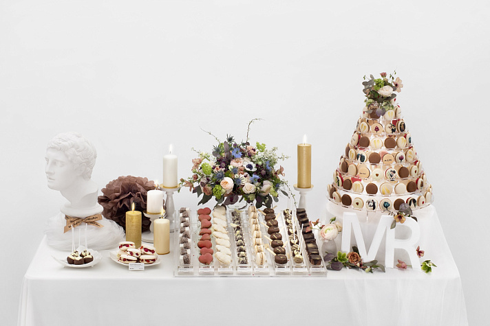 Внешний вид кэнди-бара не менее важен, чем вкус. Мы привыкли использовать для декора самые эффектные кондитерские приемы: пищевое золото, обрамление свежими ягодами, тонкий рельефный рисунок бельгийским шоколадом. В качестве главного угощения обычно предлагаются лайтбоны, собранные в необыкновенный свадебный торт, каждый кусочек которого как бы парит в воздухе