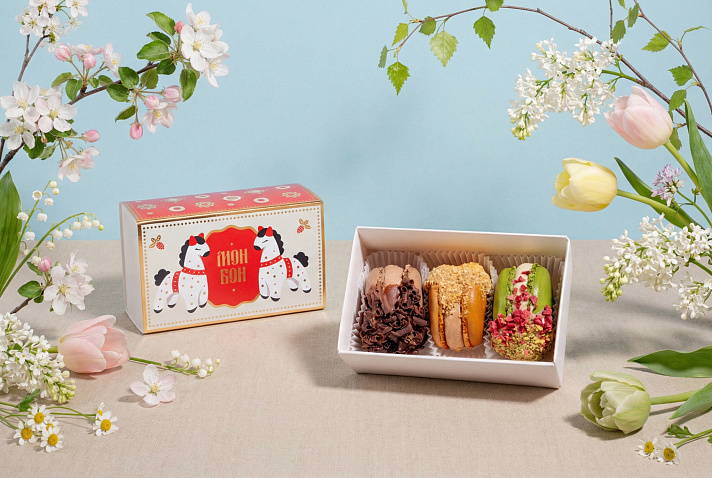 • Яркая коробочка, ленты премиум-класса, которые приятно развязывать, и симпатичные открытки превращают монбоны в универсальный подарок
