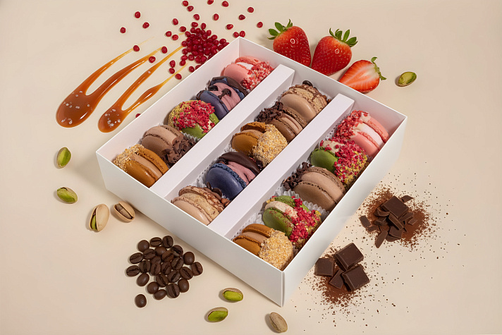 • Монбоны — большие пирожные макарон, вручную приготовленные из натуральных ингредиентов экстра-класса и содержащие до 3 изобретательных начинок
